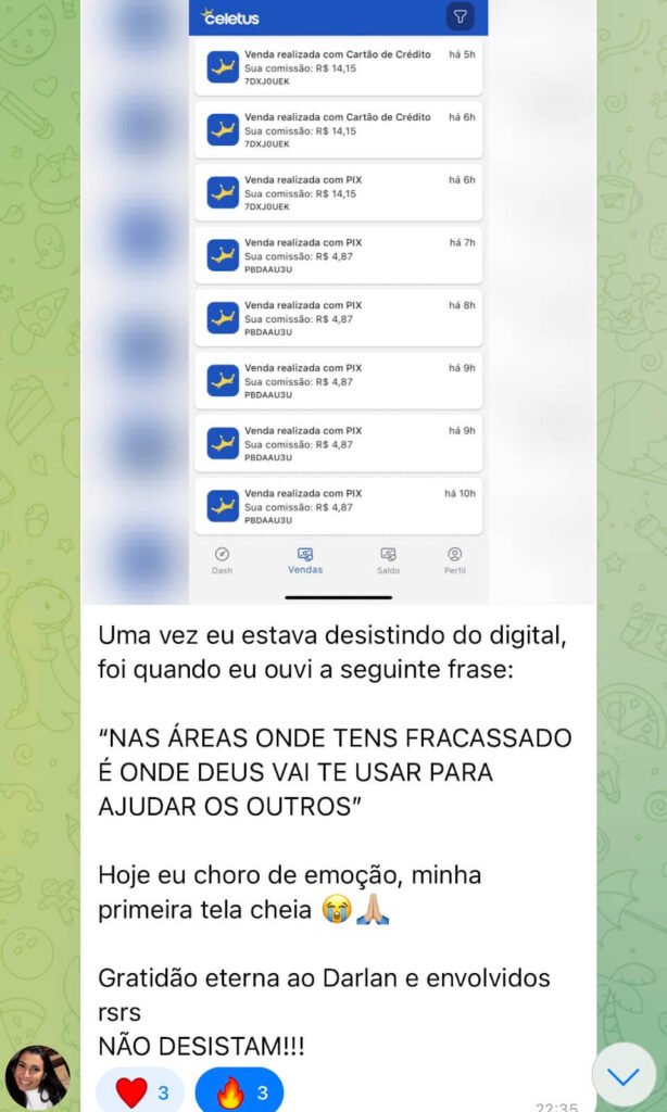 É por isso que me coloco na posição de sócio, pois pra minha promessa ter sucesso, VOCÊ precisa vender, assim como esses prints.